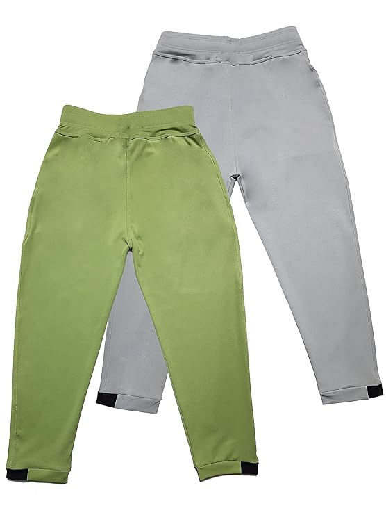 STARLATH Boys Track Pants, Micro 4 Way Lycra Lower for Kids, Active Performance and Everyday Life Trousers, Sports wear Combo (Pack of 2)