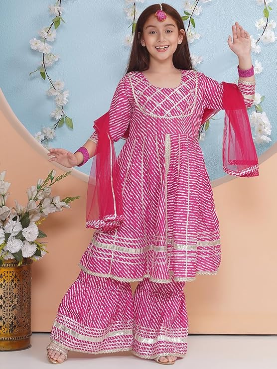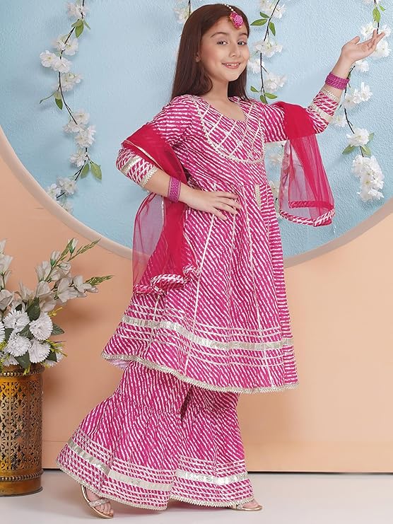 Little Zing Girls' Printed Kurta Sharara Set – Traditional Ethnic Wear For Festivals, Weddings & Special Occasions Clothing Set