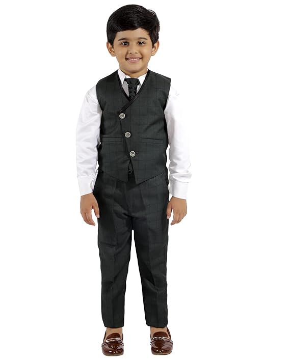 FOURFOLDS 5 Piece Coat Suit with Shirt Pant Blazer Waistcoat & tie for Kids & Boys_SH502