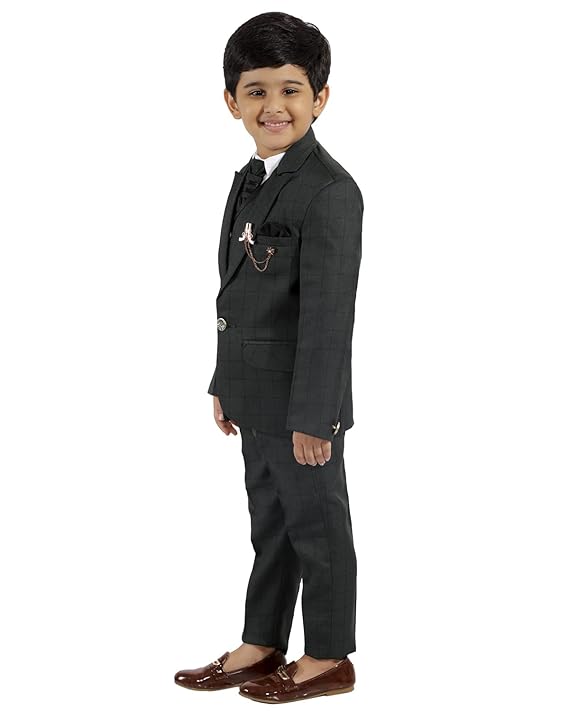 FOURFOLDS 5 Piece Coat Suit with Shirt Pant Blazer Waistcoat & tie for Kids & Boys_SH502
