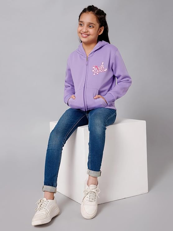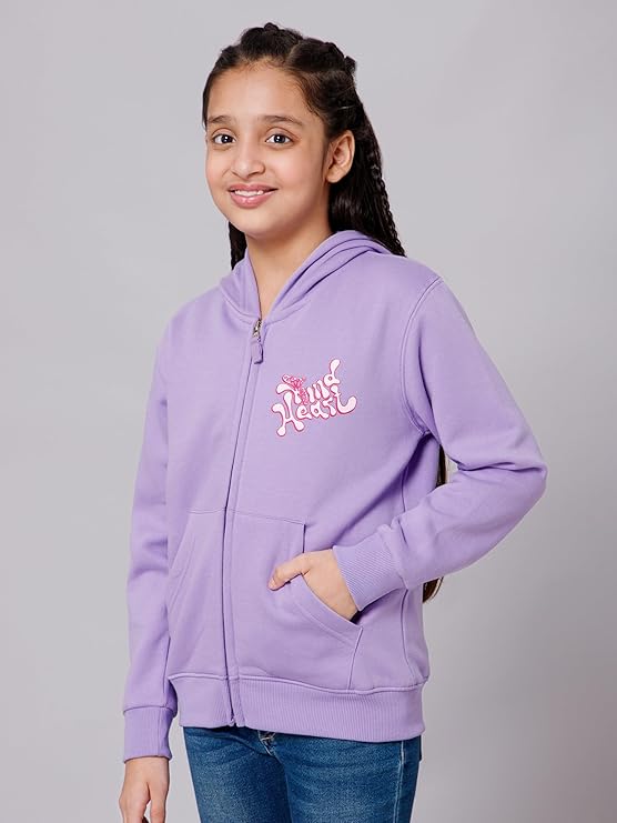 Alan Jones Clothing Girls Zipper Hooded Sweatshirt | Placement Print | Insert Pockets | Ribbed Hem | Regular Fit | Sizes 3–14 Years