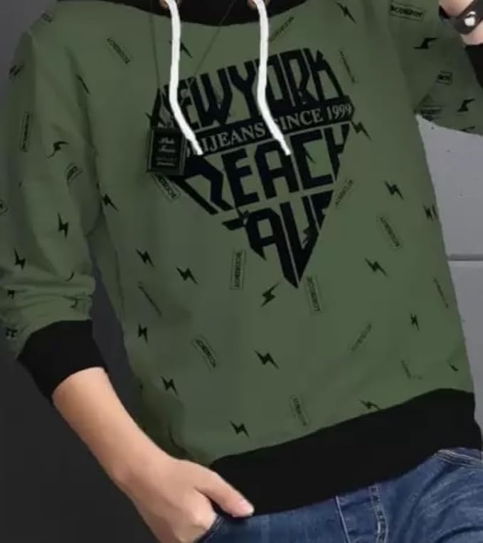 ATLANS Cloths Kids Boys & Girls Hooded Neck Full Sleeves Typography Printed T Shirt, Olive Green, Pack of 1