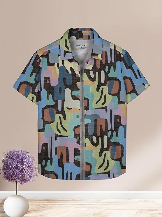 HELLCAT Trendy Regular Fit Printed Causal Half Sleeve Shirt for Boys