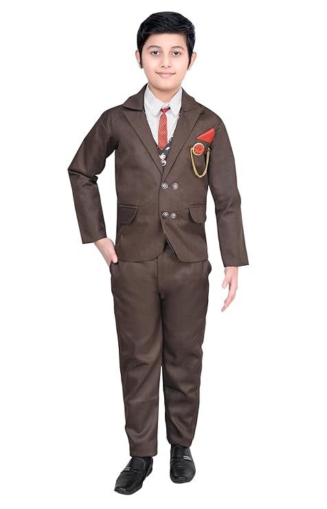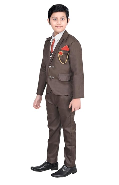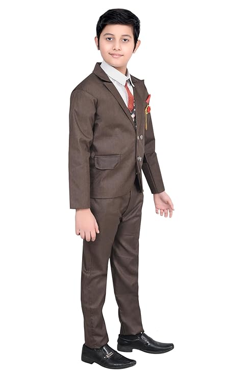Elevate your little one's style with this dapper boys suit set in a stunning blue hue. Crafted with premium fabrics, this ensemble exudes sophistication and comfort, perfect for special occasions or formal events. The well-tailored jacket features a sleek lapel and flattering fit, while the trousers boast a smart, streamlined silhouette. Whether your young man is attending a wedding, a family gathering, or a formal party, this suit set will ensure he looks his absolute best. The vibrant blue shade adds a touch of vibrancy, allowing him to stand out from the crowd with confidence. Pair it with a crisp white shirt and dress shoes for a polished, put-together look. With its exceptional quality and attention to detail, this boys suit set is an investment in timeless style that will serve him well for years to come. Embrace the art of dressing well from an early age and let your little gentleman shine in this impeccable ensemble.