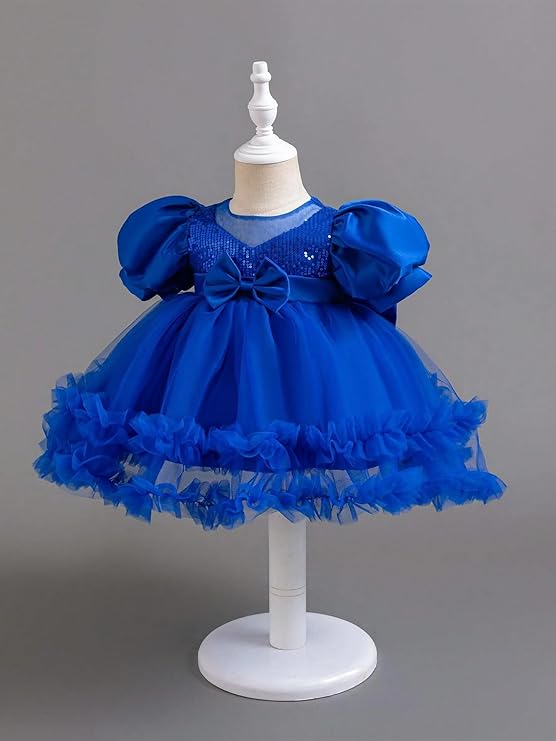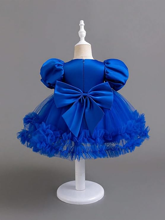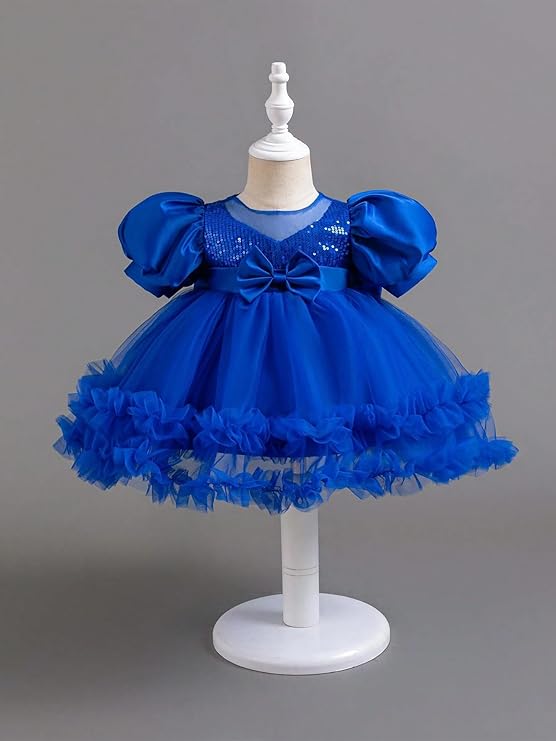 Niren Enterprise Rollar Frock net Embroidery Work Ruffle Patterned Flared Short Sleeve Girl Frock, Pack of 1