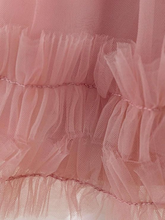 Niren Enterprise Rollar Frock net Embroidery Work Ruffle Patterned Flared Short Sleeve Girl Frock, Pack of 1