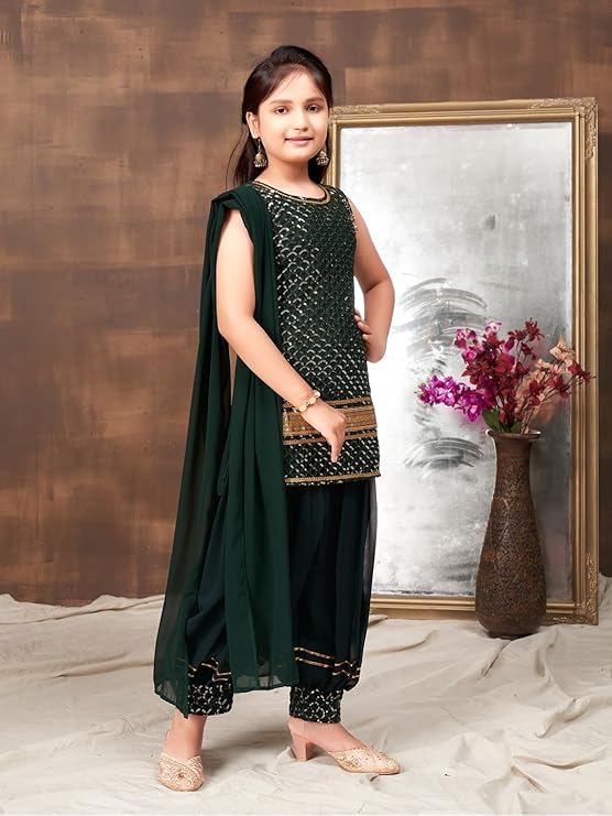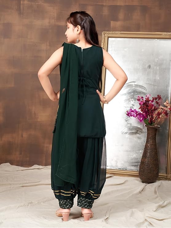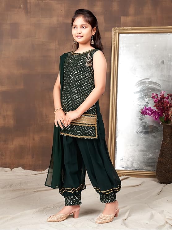Aarika Girl's Georgette Ethnic Wear Sequin Embroidery Lace Work Kurti Patiala Suit Set
