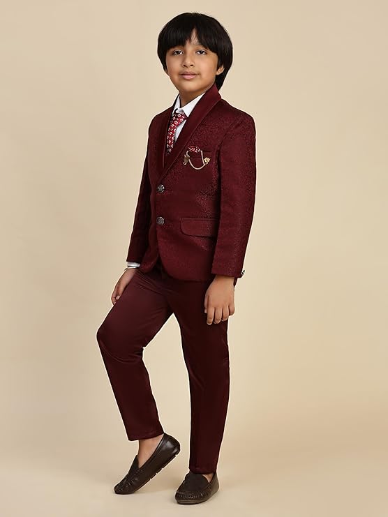 Pro-Ethic Style Developer 5 Piece Boys Suit Set Pary Wear for Kids Wedding Outfit | Set of Shirt, Pants, Coat, Waistcoat and Tie for Kids