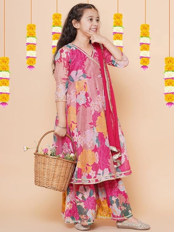 Naixa Girls Rayon Fabric Floral Printed 3/4 Sleeve Sharara Dress Set For All Occasion salwar suit