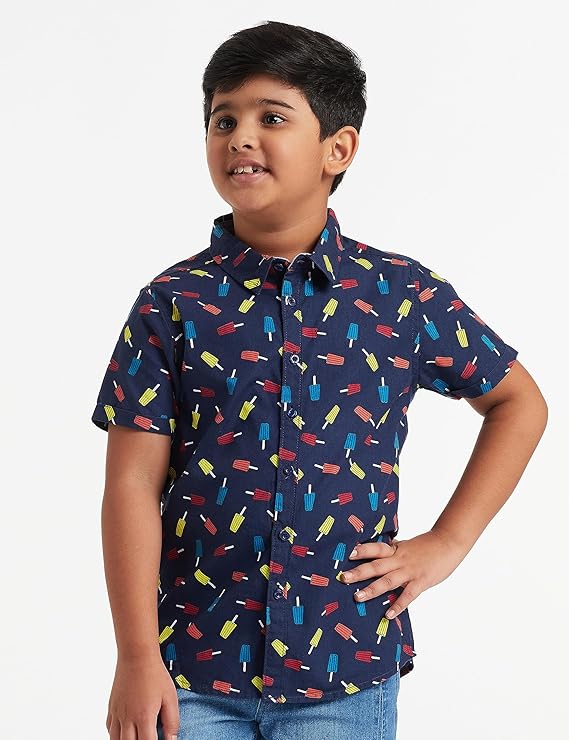 Amazon Brand - Jam & Honey Animal Regular Fit Boys 100% Cotton Printed Half Sleeves Shirt | Age 2-12 Years