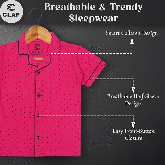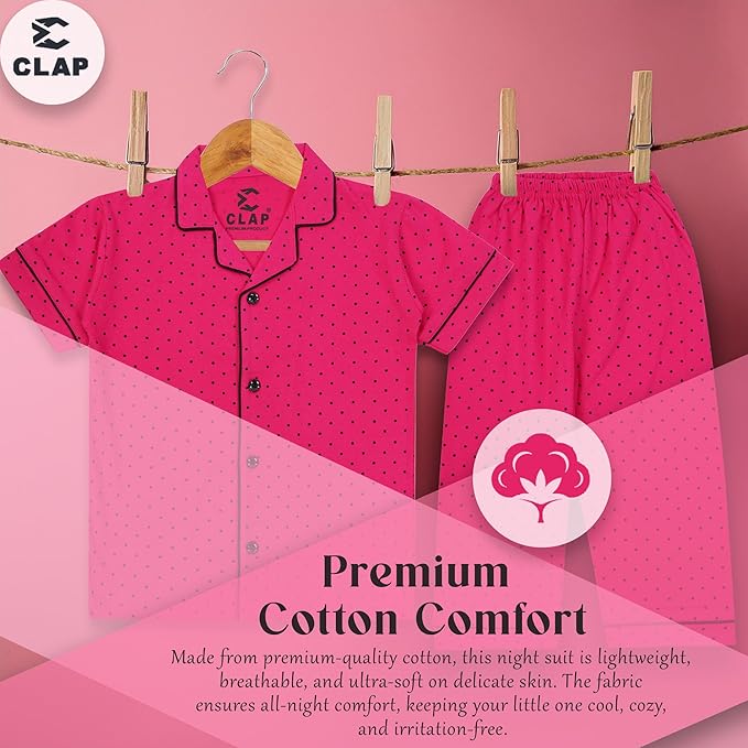CLAP Kids Cotton Printed Half Sleeves Night Suit