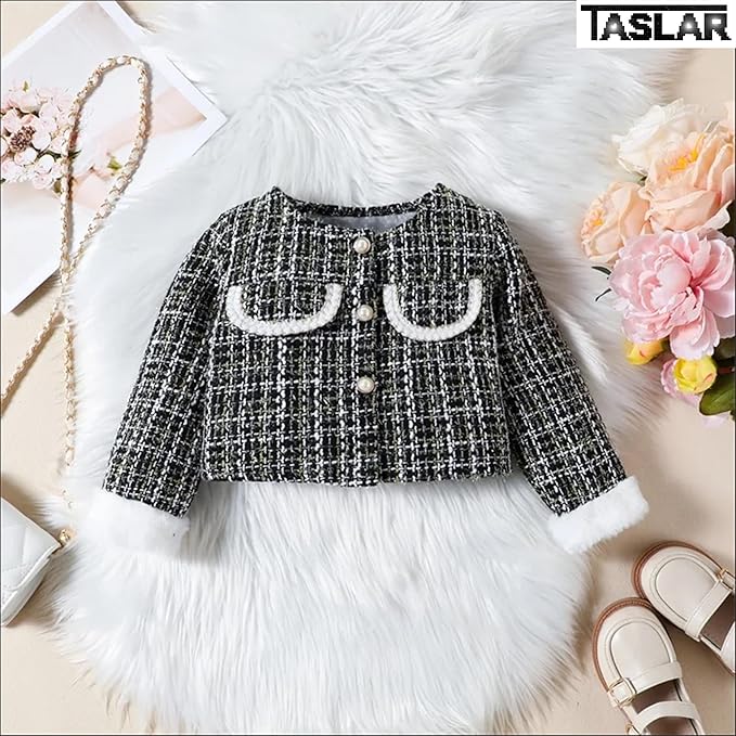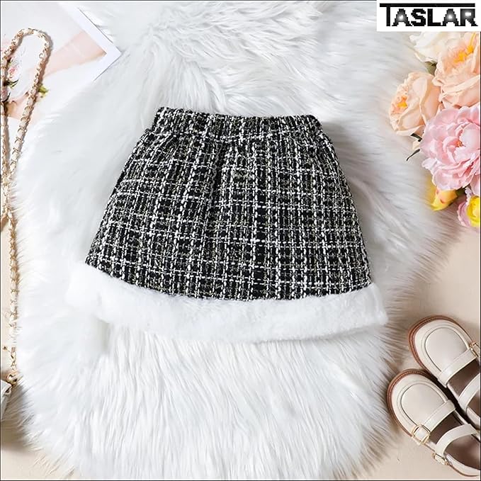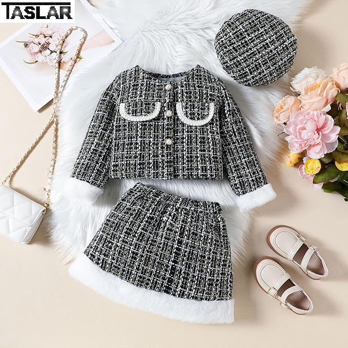 TASLAR Kids Toddler Jacket Baby Girls Suit Furry Patchwork Coat + Skirt + Beret 3Pcs Long Sleeve Shirt Tops Skirts Hat Sets Kids Casual Fashionable Party Dress