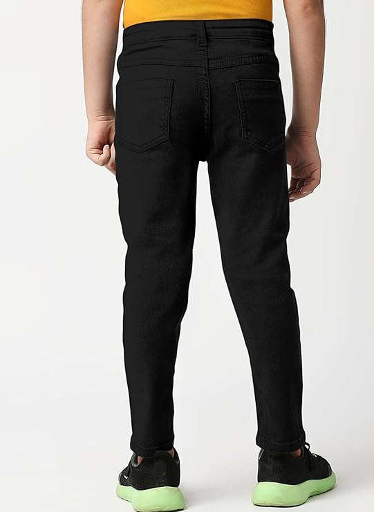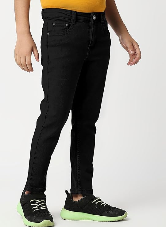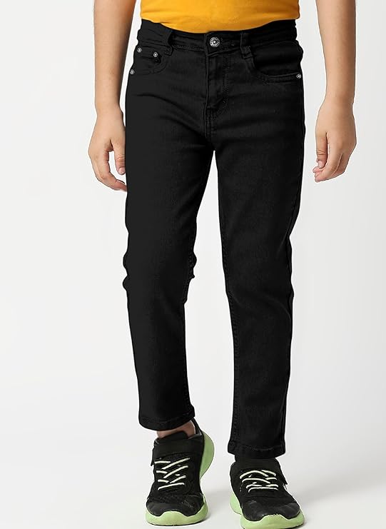 Ambika Enterprises Boy's Solid Cotton Slim Fit Jeans | Mid Rise Denim Pant for Kids (Pack of 1)
