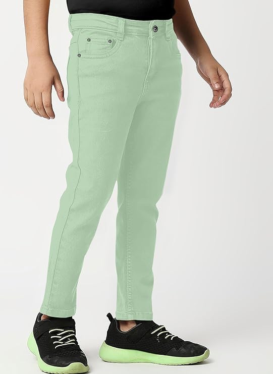 Ambika Enterprises Boy's Solid Cotton Slim Fit Jeans | Mid Rise Denim Pant for Kids (Pack of 1)