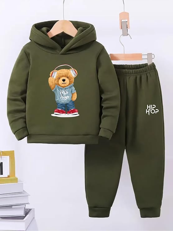 Give your little champ the ultimate blend of comfort and style with this trendy hoodie for boys and jogger cord set for boys, perfect for everyday wear or outings. Made from soft, breathable cotton, this track suit is designed to keep kids cozy while letting them move freely, whether they’re playing outdoors or lounging indoors. The smartly designed boy set clothes include a full-sleeve hooded sweatshirt and matching joggers with a comfortable elastic waistband. The eye-catching prints and solid color combinations add a modern flair that boys will love. Whether you're searching for durable hoodies for boys for the winter season or want an all-in-one clothing set for boys, this versatile outfit has you covered. This is an ideal gift option or wardrobe essential for years boys dress like 3–4 years, 5–6 years, or even 7–8 years. It offers excellent quality and value, making it suitable for both casual days and cool-weather outings. Match it with sneakers for a sporty, stylish look that turns heads at the park, school, or family get-togethers.